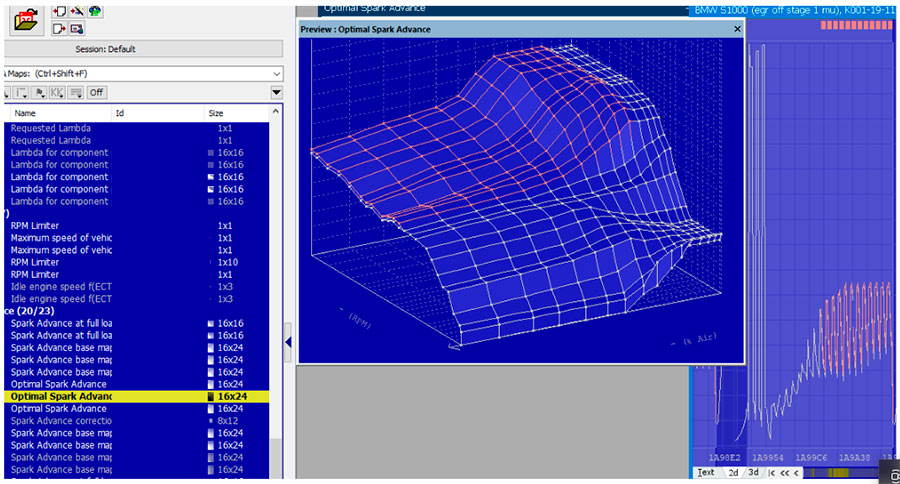 Fueling maps – Air mass, Lambda maps correction, partial and full throttle maps.